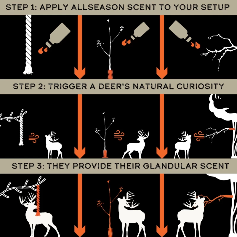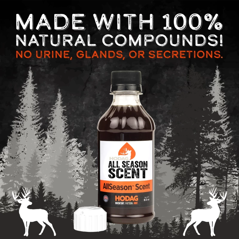The AllSeason Scent is made of 100% natural organic compounds. It contains absolutely no deer or animal secretions, fluids, glands, or urine.